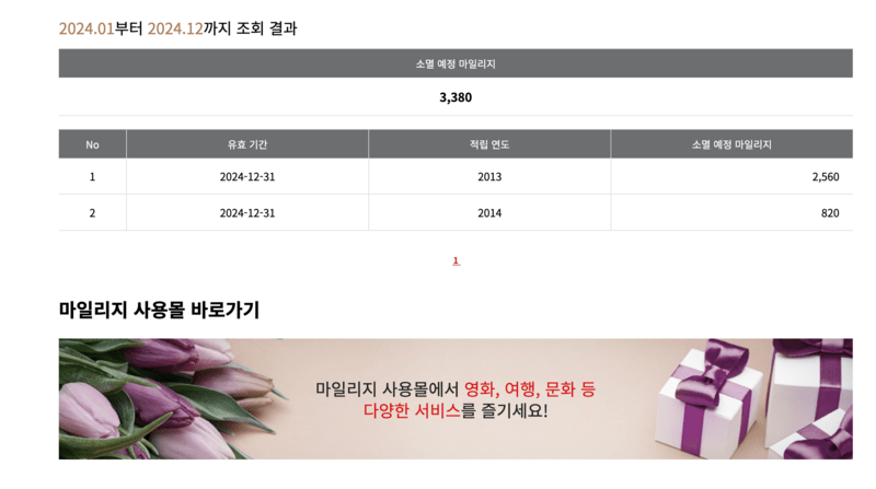 - 2012년, 2013년 적립 마일리지: 2024년 12월 31일까지 연장
