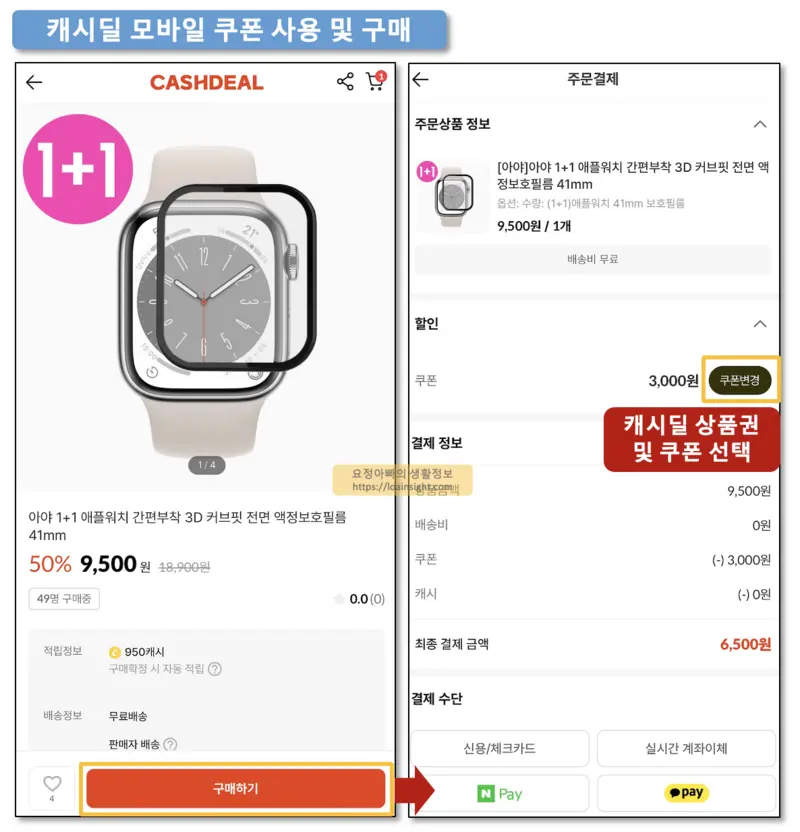 상품 구매 시 캐시딜 모바일 상품권을 사용하여 할인 받을 수 있고,