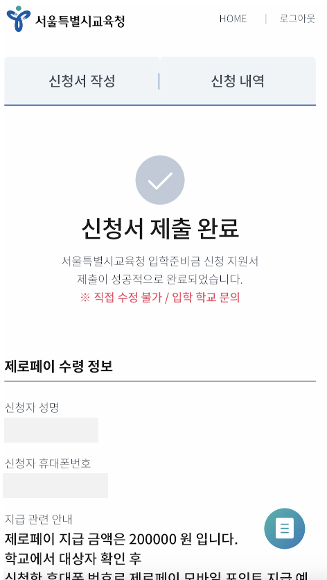 2023 서울시 초/중/고 입학지원금 추가 신청 기간 안내