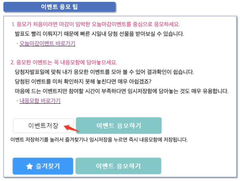 응모한 이벤트 또는 마음에 드는 이벤트를 응모함에 저장해 보는 것을 추천드립니다.