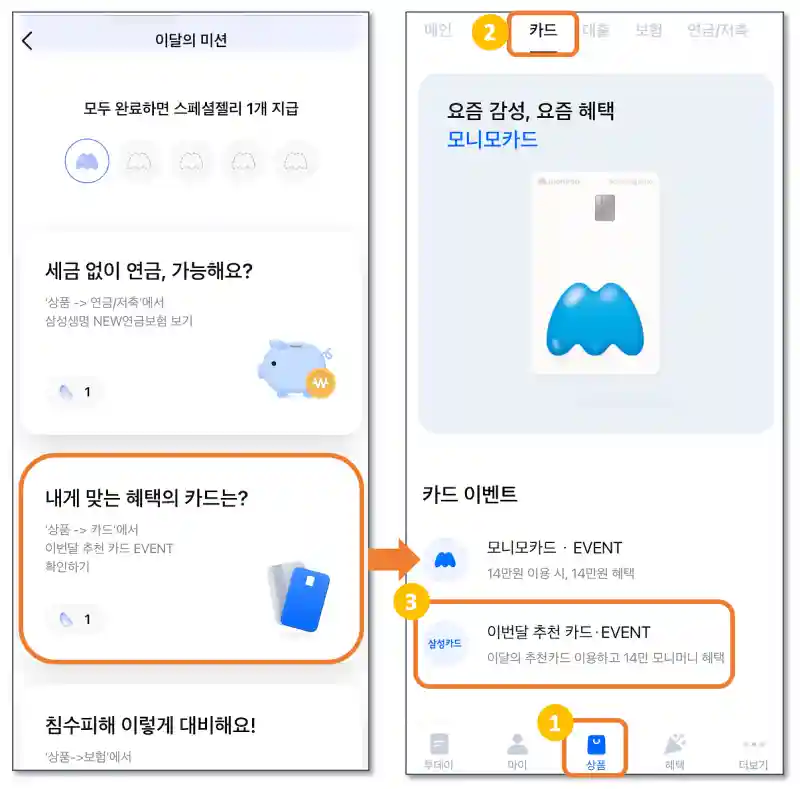 3. '이번달 추천 카드 EVENT' 항목 선택하면 미션 완료!