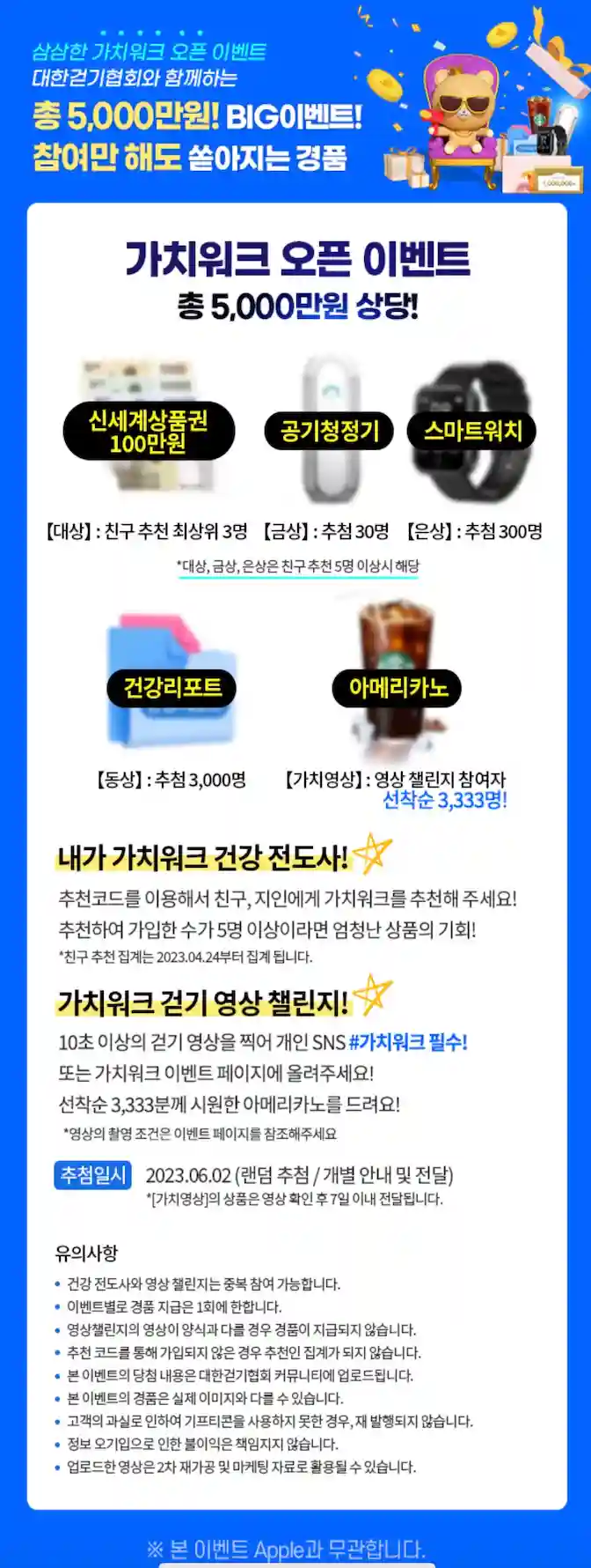 가치워크 추천인 넣고 총 5천만원 상당 경품 당첨 기회
